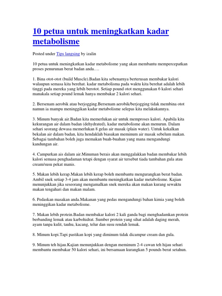 10 Petua Untuk Meningkatkan Kadar Metabolisme Pdf