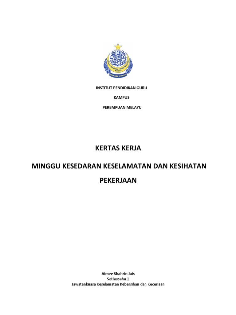 Kertas Kerja Minggu Kesedaran Keselamatan Dan Kesihatan Pekerja Pdf