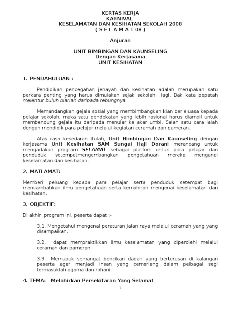 Kertas Kerja Kesedaran Kesihatan Dan Keselamatan Pdf